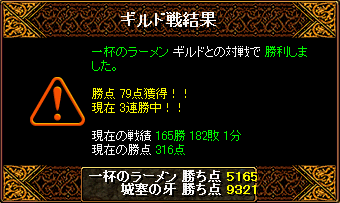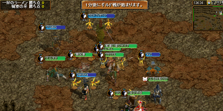 8月12日(木) vs 一杯のラーメンさん 毎週木曜日はラーメンの日 って言っても過言ではないくらい高確率で対戦させて頂いてますね! GV組んでいるGが少ないから仕方ない; しかしながら毎回手汗にぎるいい対戦ができているラーメンさんだから問題なし! 勝ったり負けたり面白いよね! 何名か走ってったからSS写ってないけど気にしない~マップに写ってるから許してね! 今日は火力3と牙にしては多め。 悪魔さんがいるからレクも期待できるね@@ 火力の枚数があるとアスヒも散らせたりできるから得点力UPは間違いなし~ 参加数はほぼ同じかな? AKITさん要注意! 開始すぐにドラツイさんを落とせたみたいだけど どうも転送の順番が最後だったらしい ドラツイで転送最後だと大変ですもんなー; 以前やってたのでよくわかります++ SCAさんから数名の移籍組を発見 アチャさんが火力の高い人だったから気をつけないと~ 序盤は取って取られてのシーソーゲーム 気を抜いたら一気に流れをもって行かれる感じでしたね! 今回一番きつかったのは烈火かな~ 相手様に3名のネクマが居て1名はレク 残りが烈火で主にWIZに粘着しつつ臨機応変に動いてる感じでした。 こちらのWIZが戦闘の多くの時間烈火粘着されていたのでかなり失点が増えてしまった感じですね@@ 刺先生がジャッジをかなりの頻度で撃ってくれていたのでレクと契約の被害はまったくなかったかな。 天使が一人いるだけでかなり違うな~ とあらためて実感しました メインPTの失点の7~8割が烈火中の失点だったので、後半ぐらいからアスヒに頼らず個々に足を動かしていくように決めてからだいぶ失点が減らせたかな! 次回からはもっと早目に対応できるようになりたいところですね@@ PR 2010/08/13(Fri) 14:03:29