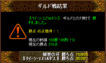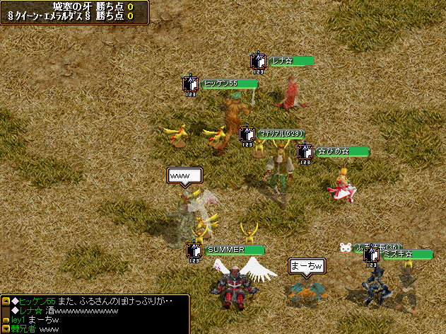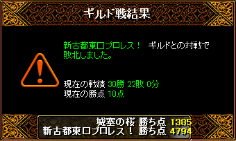 お風呂での疑似サウナですこんばんはー 短い時間でも汗結構かくので0.5キロぐらいは減りますね! さっぱりして気持ちいいですが上がった後汗がひくまでが地獄ですよ~っと。 9月1日 桜の対戦相手は新古都東口プロレス!さん。 SS撮り忘れてしまったけど参加人数は6人w 天使1剣士1弓1WIZ2武1 アーチないと相手範囲が面倒なので常時BIS状態を維持。 機動力が皆無だったのが痛かったかな~ 相手さま19名いたもよう!すごいなーwで武道が多かった多かった! ほぼ終わりまでずっと戦闘状態が続いたけど 倍以上の人数差をよくこらえきれたな~と思う 危ない場面もあったけどw 個の力が鍛えられてるって感じでおもしろかったね! またお願いしたいなーw 8月31日 牙の対戦相手は§クイーン・エメラルダス§さん 参加は8人 BIS1天使1は心強い! 天使が居るのと居ないのじゃ大違いだものね@@ 相手も同じぐらいの人数だったかな WIZ2居たけど社長様のレクが効いてたのかいい感じに得点できてましたね! 剣士相手には足を止めないこと。 装備はき替え中に死んでた人もいたっけ・・・誰だっけな^-^ 相手剣士が1名だったので大丈夫だったけど、2名いたらまたわからなかっただろうな~ PR 2010/09/02(Thu) 02:36:24