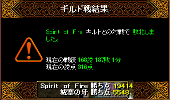 早く救助されるといいですね! 9月2日 本日の対戦相手はSpirit of Fireさん 参加はいい方だけど あら?BISさん^^ 鮎さんが初参戦 どうぞ宜しく! 木曜日はBIS無しのおそれがあるなあ・・・ 開始直後に散っていった仲間の為に・・・いざ出陣w 相手様バランスがよかったね!火力支援妨害と要職がきっちりいる感じ ブレエビ無しだと耐久力に大きな差がでるから厳しかったな 戦闘時間の大半を烈火で過ごしてたのでアスヒがまわせず申し訳ない 物資もだいぶあまっちゃったの~ いい連携からの得点もあったりしたのでまた次回頑張りましょ! 木曜日がBIS無しの事があったりするので桜の水曜ととっかえようか思案中 いかがしたものか PR 2010/09/03(Fri) 14:52:41